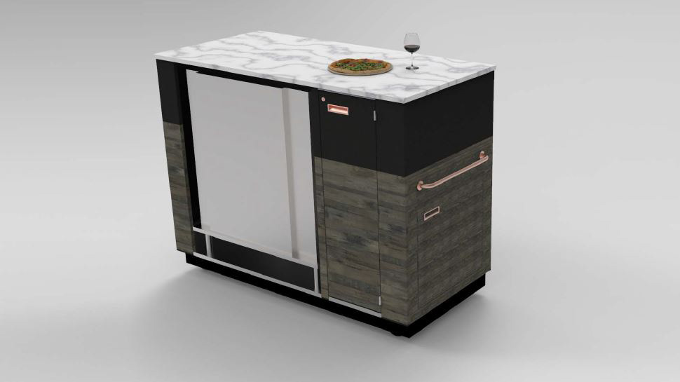 + may also be used as a tall chef's table or food & beverage counter display with solid surface top